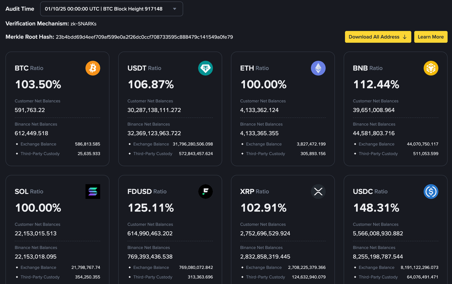 Binance secara rutin melakukan uji kriptografi dan verifikasi saldo (proof of reserves) untuk membuktikan bahwa cadangan asetnya menutupi 100% dana milik pengguna.
