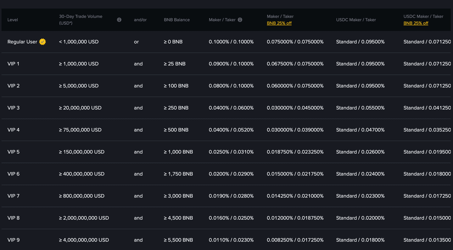 Pada bagian ini, kita akan melihat contoh gambaran penghematan biaya ketika trading menggunakan USDC darpada mata uang fita. Kami akan mengambil contoh trading fee Binance. Berikut penjelasannya: