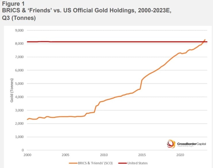 Sehingga BRICS (Brasil, Rusia, India, China, dan Afrika Selatan) menjadi pembeli emas terbesar pada 2023 untuk memperkuat argumen tentang kekuatan mata uang mereka.