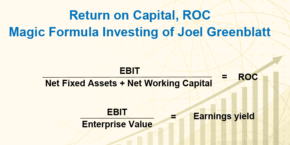 Menurut Joel Greenblatt, penulis buku terkenal "The Little Book That Beats the Market", nilai saham untuk jangka panjang seharusnya mencerminkan nilai sebenarnya. Sementara itu untuk jangka pendek, nilai ini bisa dipengaruhi oleh emosi. Karenanya, strategi investasi jangka panjangnya adalah mencari perusahaan yang bagus dengan harga yang terjangkau. Ini merupakan dasar dari value investing, melalui formula ajaibnya: