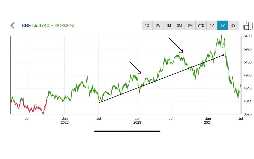 Dalam gambar berikut, kita dapat melihat grafik harga saham Bank Rakyat Indonesia (BBRI):