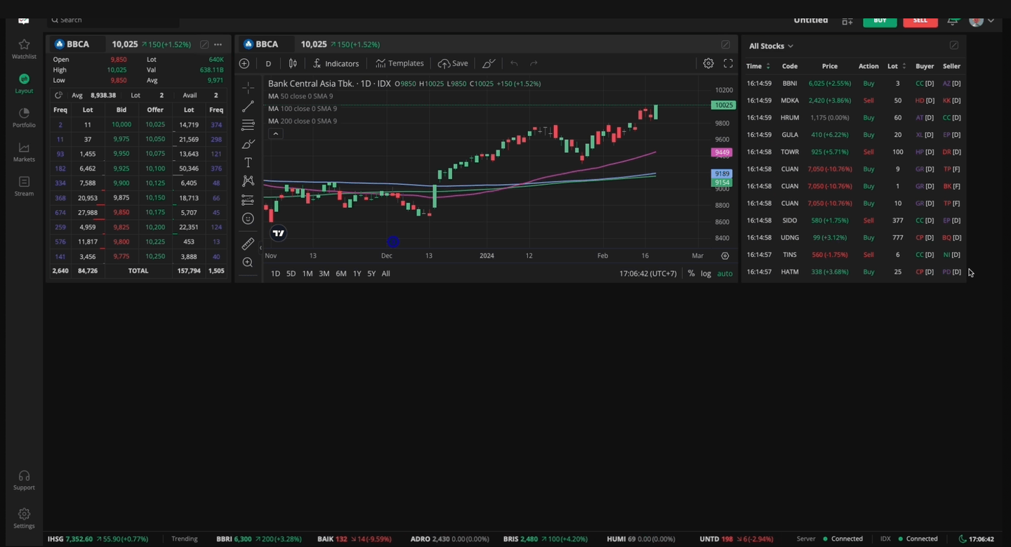 ✅ Menggunakan Tradingview untuk membantu investor pemula menganalisa teknikal saham | ❌ Tidak menyediakan akses ke saham perusahaan internasional seperti di pasar Amerika Serikat (AS) | ||