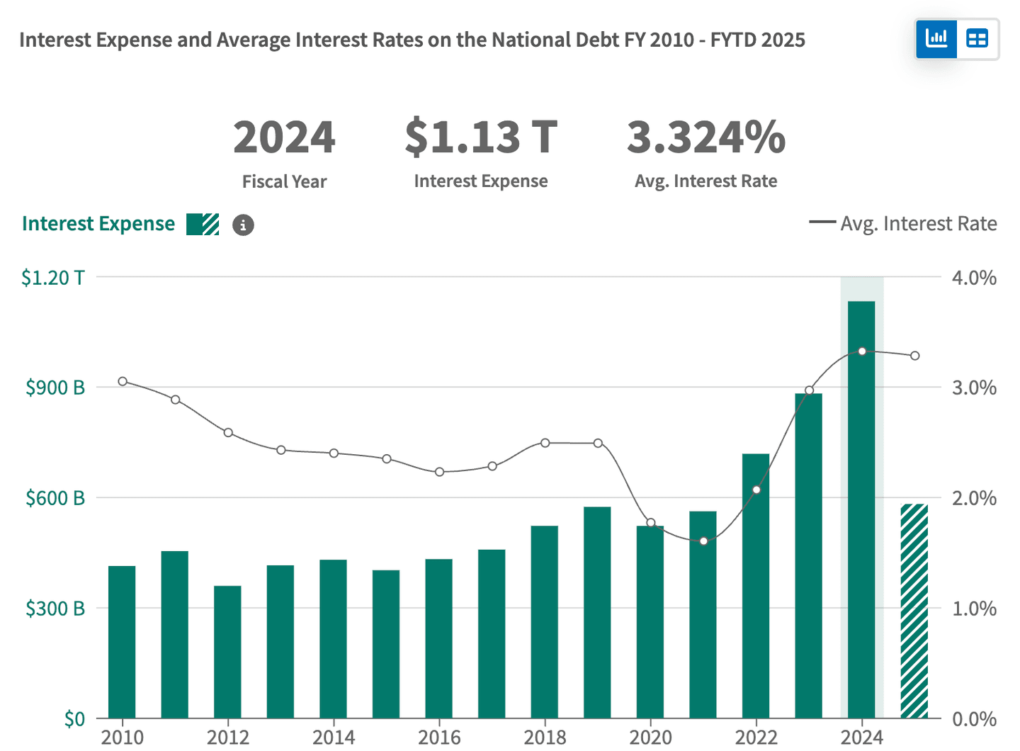 Pada tahun 1970-an dan 1980-an, tingkat utang Amerika Serikat (AS) tetap di bawah 50% dari PDB. Saat ini ambang batas ini telah terlampaui signifikan, mencapai lebih dari 100%. Lebih buruk lagi, biaya bunga utang Amerika telah menjadi anggaran terbesar ketiga pemerintah AS, melebihi US$ 1 triliun per 2024. Dan pembiayaan kembali jumlah ini dengan suku bunga tinggi merupakan tantangan besar bagi pemerintahan Trump.